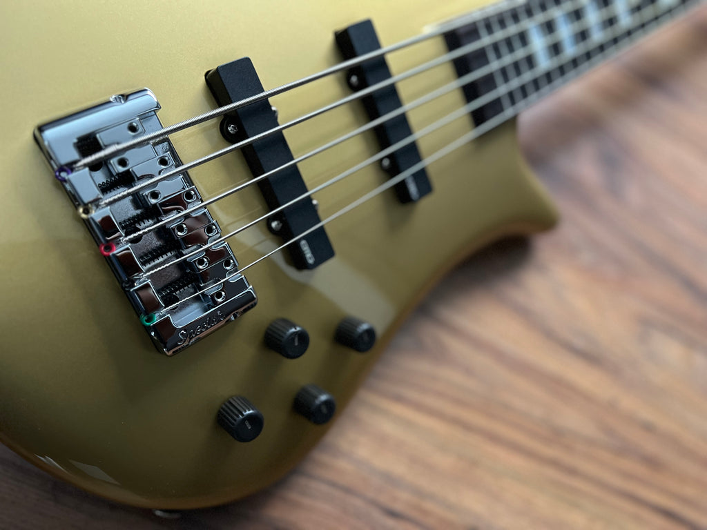 Todos los modelos de la familia Euro Classic cuentan con una escala de 34” y un paquete electrónico completo de EMG. Los modelos de 4 cuerdas cuentan con la configuración de pastilla P/J “inversa”, mientras que los de 5 cuerdas cuentan con una configuración J/J. En cuanto a la apariencia, hay dos nuevos acabados distintos para elegir: Oro metálico y Azul metálico, cada uno con herrajes cromados. Descubra el sonido que inspiró una década de líneas de bajo legendarias con la serie Euro Classic.