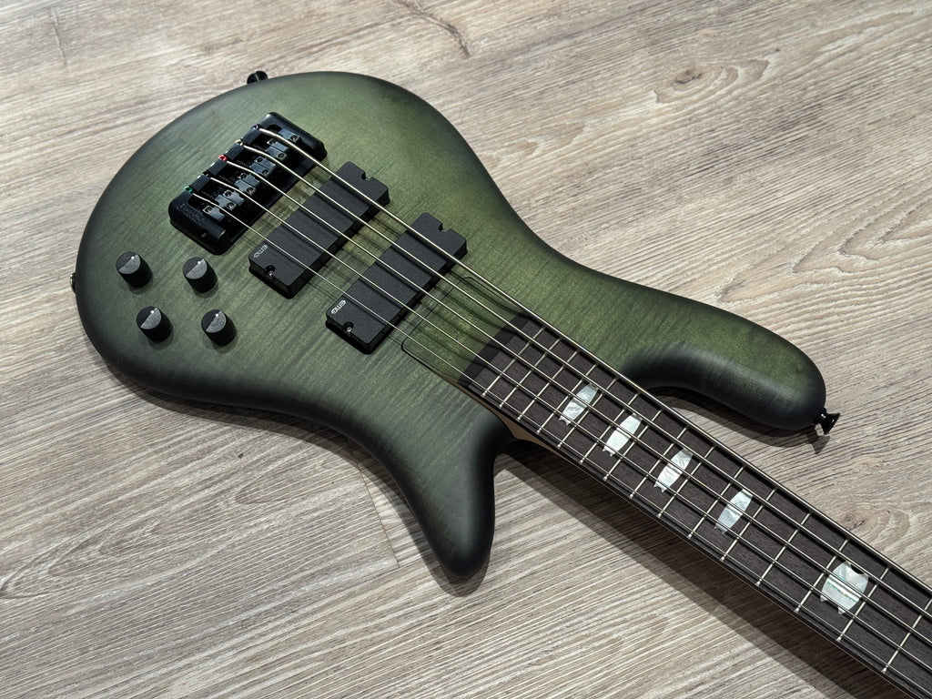 Cada bajo Euro LX, independientemente de su construcción, se fabrica con materiales de primera calidad, incluyendo un cuerpo de aliso europeo, una tapa de arce europeo veteado y un mástil de tres piezas de arce norteamericano, combinado con un diapasón de palisandro para mayor resistencia, estabilidad y sustain. Estos bajos están equipados con un puente ligero de aluminio para una entonación precisa y fiable. Las pastillas activas premium de EMG proporcionan la claridad, el ataque y el funcionamiento silencioso excepcionales que caracterizan a Spector.