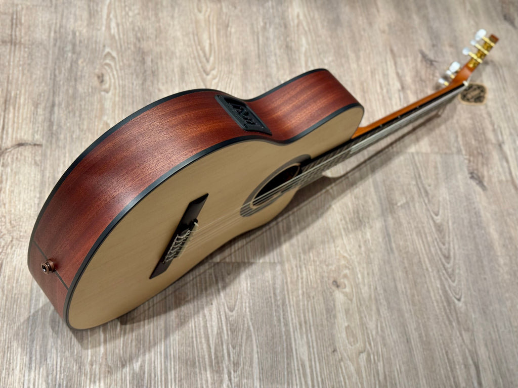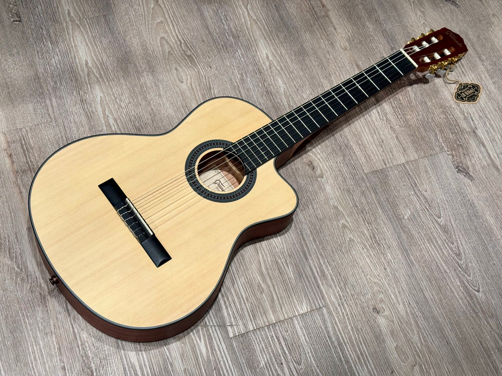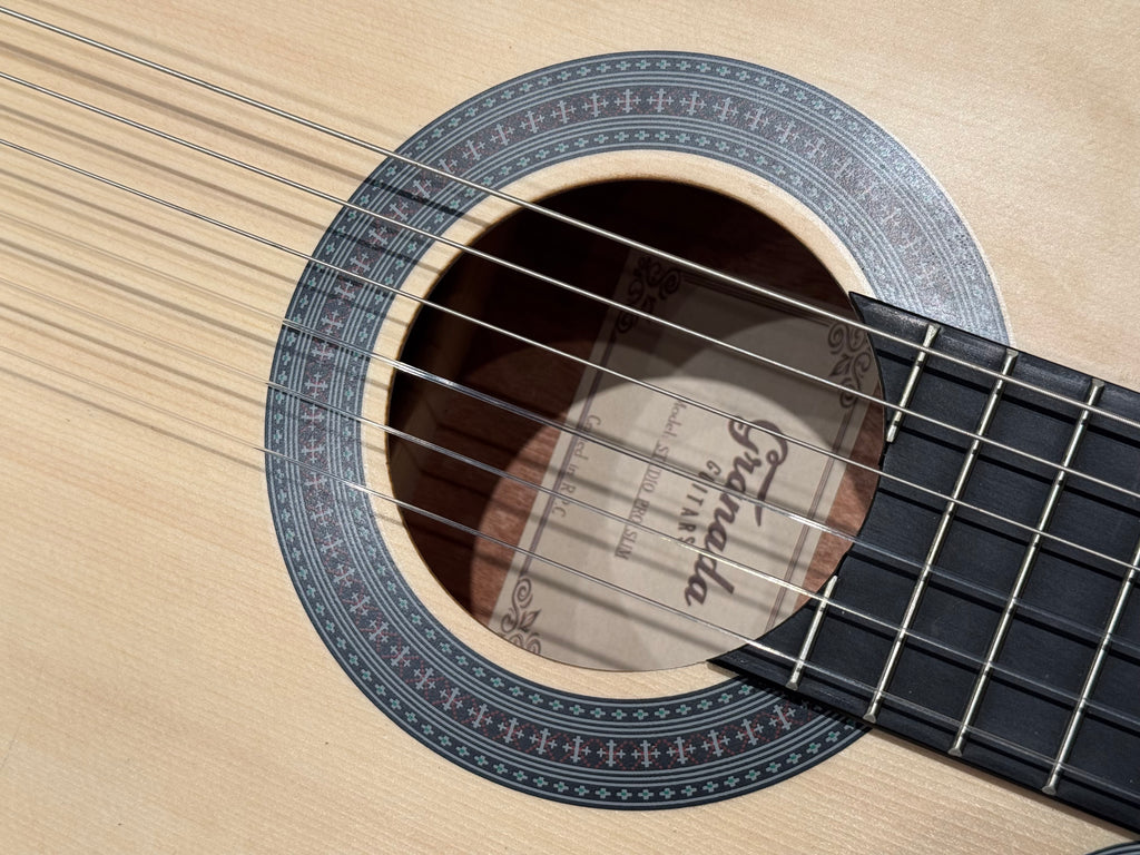La Granada Studio Pro Slim es Perfecta como primera guitarra con cuerdas de nylon, este modelo está construida con una tapa de abeto y aros y fondo de sapele para producir un tono claro y con un buen sostenido. Esta guitarra agrega al modelo Studio Pro un corte suave y bien diseñado, además de un preamplificador LR Bags.