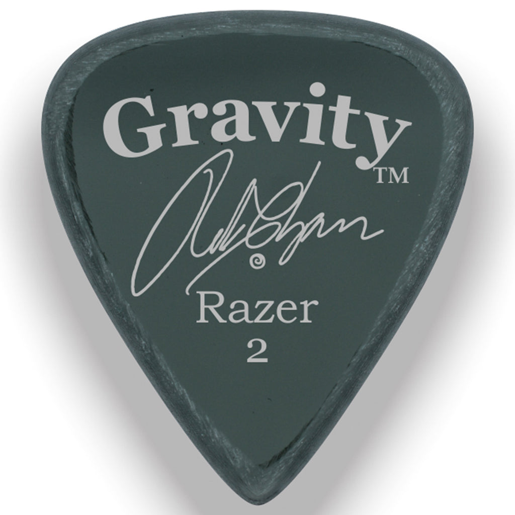 ACABADO PULIDO VS ACABADO MASTER Los biseles de cada púa se moldean en una muela abrasiva que crea biseles rugosos. Luego, esos biseles se pulen o se dejan sin pulir (lo que llamamos "acabado master"). La versión pulida se desliza por las cuerdas con muy poco esfuerzo. La versión con acabado maestro (sin pulir) es un poco más brillante y crea una liberación diferente de la cuerda. Te permite "clavar" un poco más. Es solo una preferencia personal